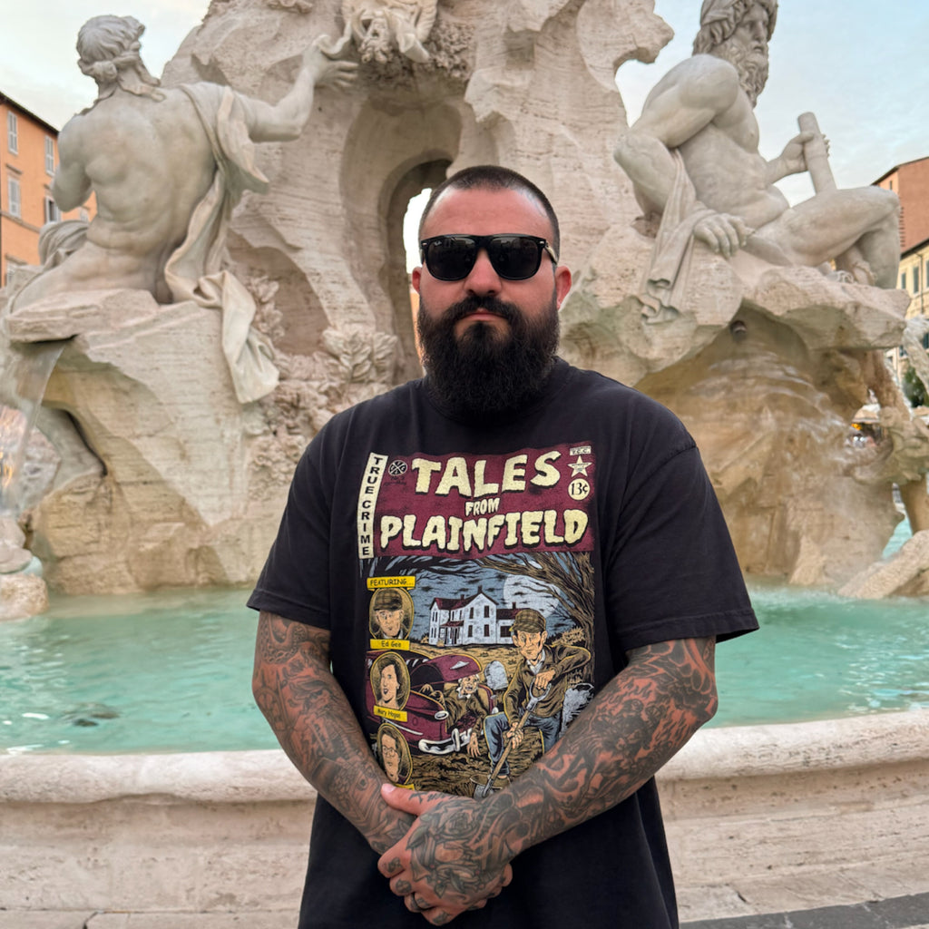 Our April-May edition of our Tales of True Crime series, “Tales from Plainfield,” features the one and only Butcher of Plainfield, Ed Gein! The artwork depicts ole Eddie digging up bodies in the local graveyard, with his infamous house of horrors set off in the background. The perfect image to portray the Ghoul of Plainfield!