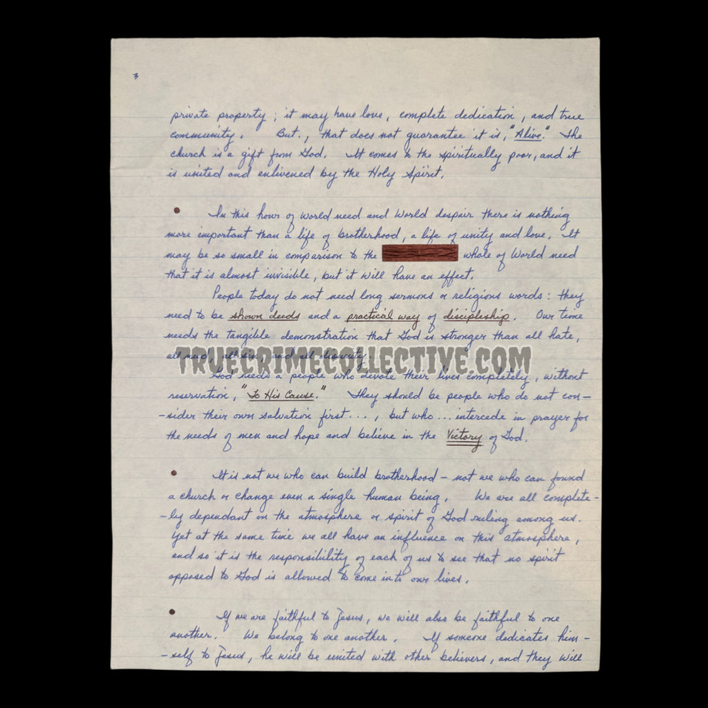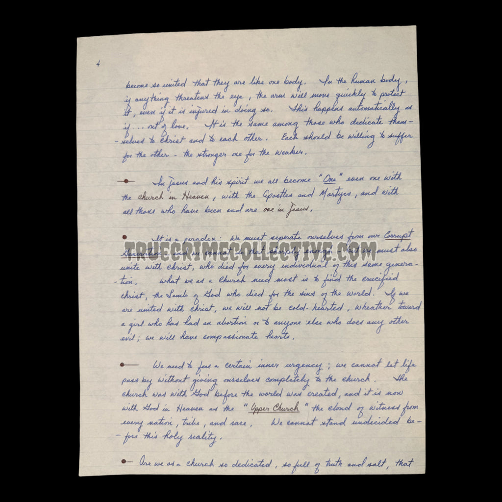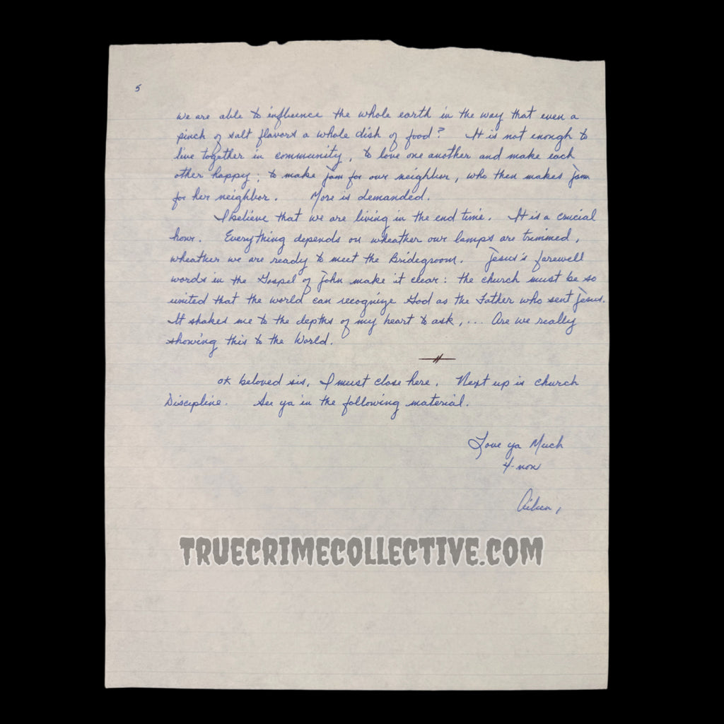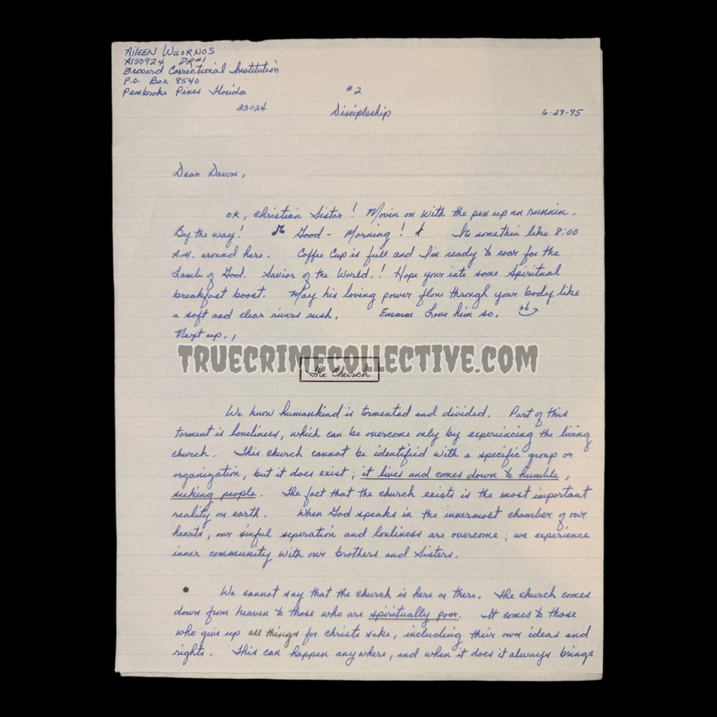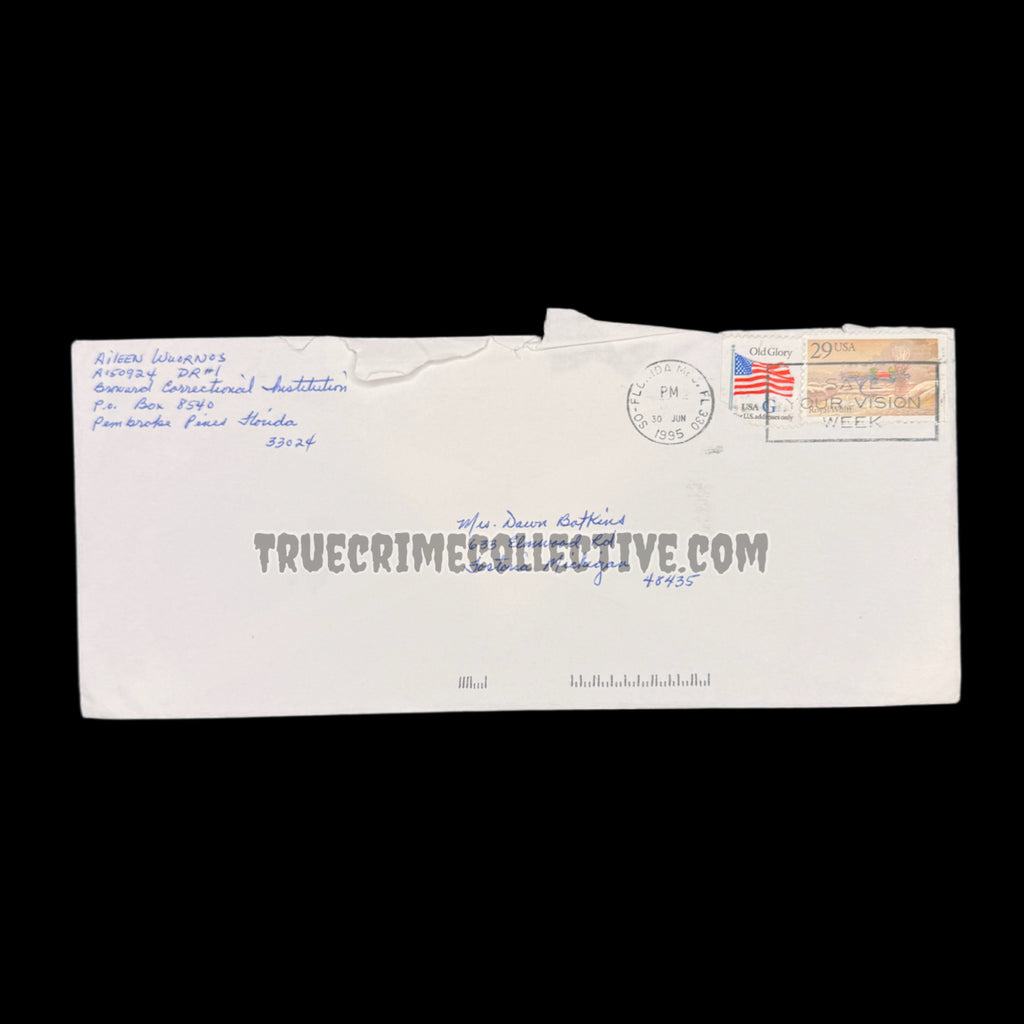 This is a five page letter sent from Aileen Wuornos to her best friend Dawn. The letter is made up entirely of religious writings and thoughts by Aileen. She became extremely religious while on Death Row and studied religion extensively, and was even working on a book about it. Aileen signed the letter multiple times. Included is the original mailing envelope.