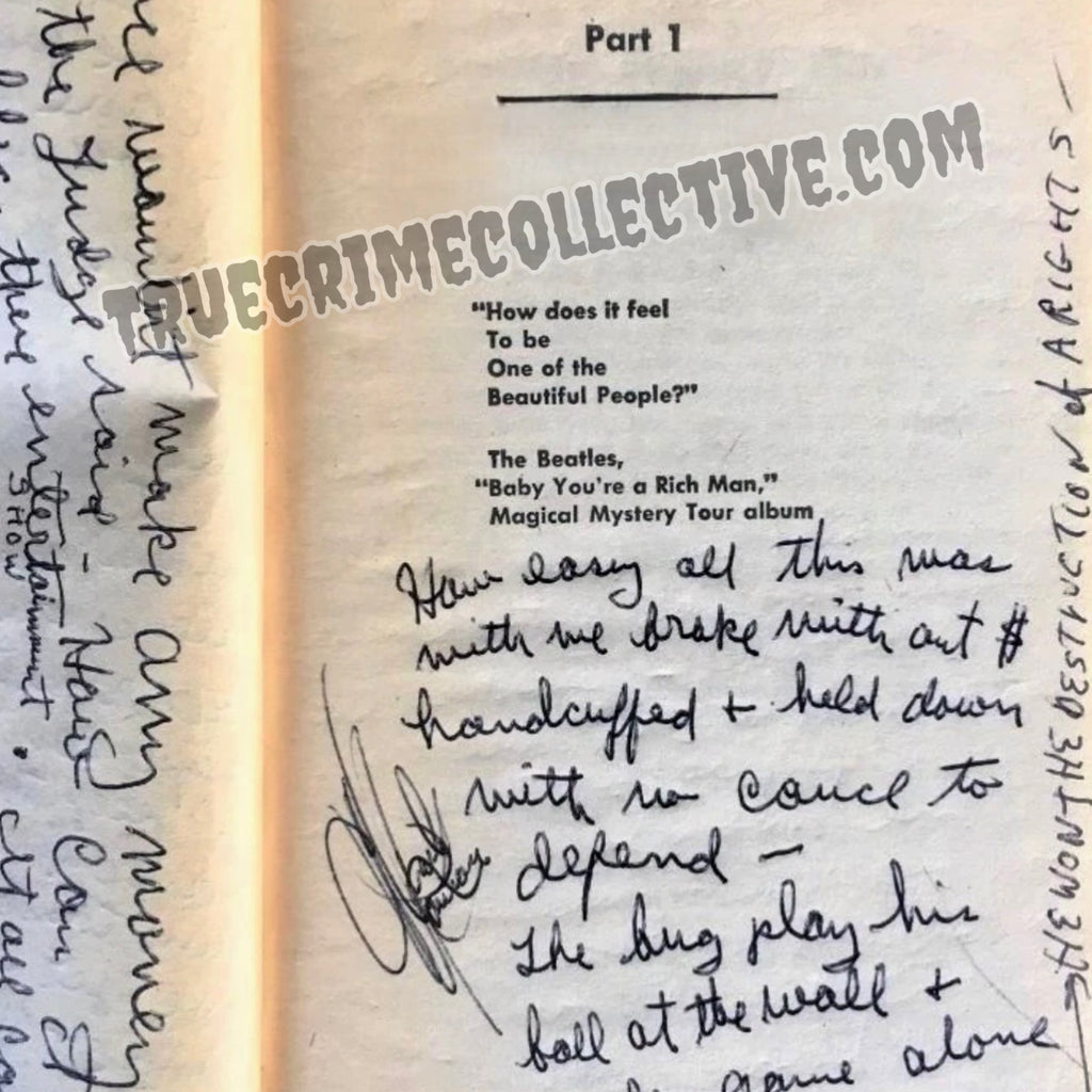 This is not just a book, it is a first-hand psychological artifact, handled and marked by one of the most infamous figures in criminal history. For true crime collectors, researchers, and serious murderabilia enthusiasts, an annotated Manson-owned Helter Skelter is considered a holy-grail item, far rarer and more powerful than a simple autograph.