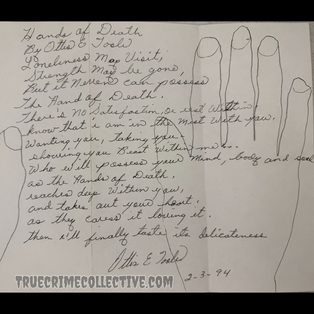 Ottis Toole “Hands of Death” Signed Hand Tracings & Poem