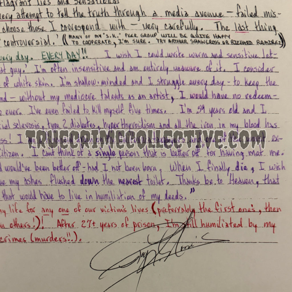 Roy Norris “Toolbox Killer” Signed Letter & Artwork