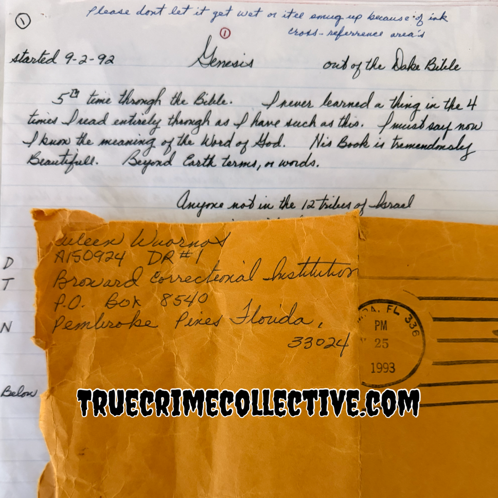 This listing is for a collection of Bible Scriptures that Aileen Wuornos wrote out by hand while on Florida’s Death Row. This collection is 160 pages in length, and includes multiple signatures from Wuornos as well. It took her over a year to complete this collection of her favorite scriptures. Also included is the envelope she mailed it out to her best friend Dawn in.