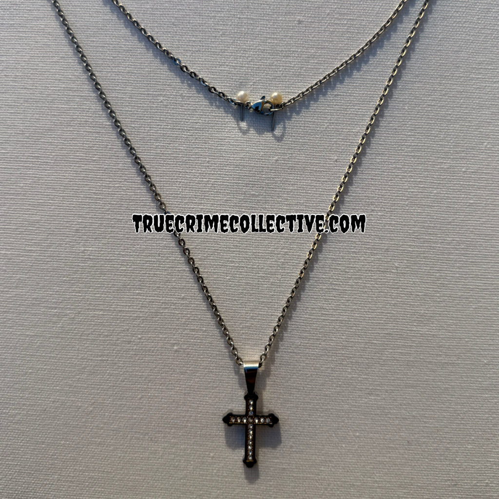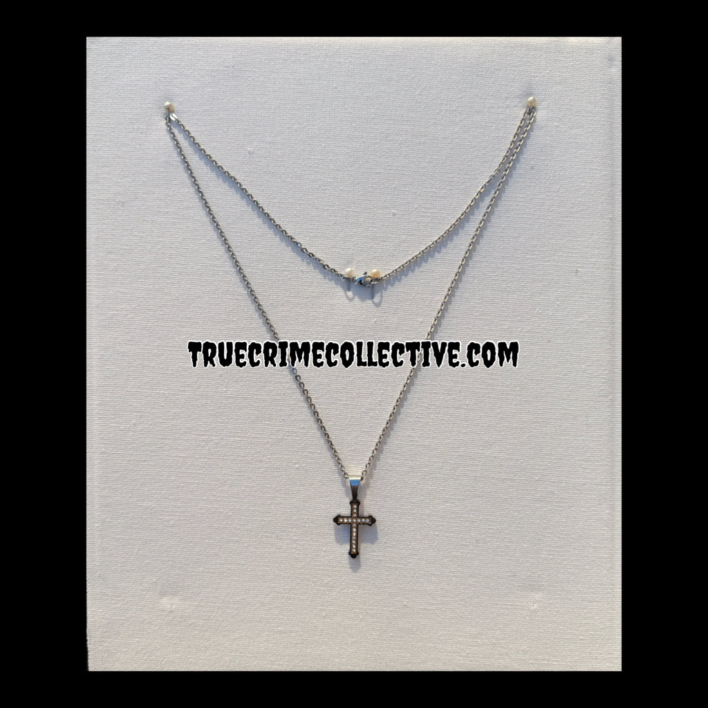 This listing is for Aileen Wuornos’ personal crucifix necklace, worn throughout her trial, all the way up until the time she was executed on October 9, 2002. Aileen was extremely religious, especially after being convicted of serial murder.