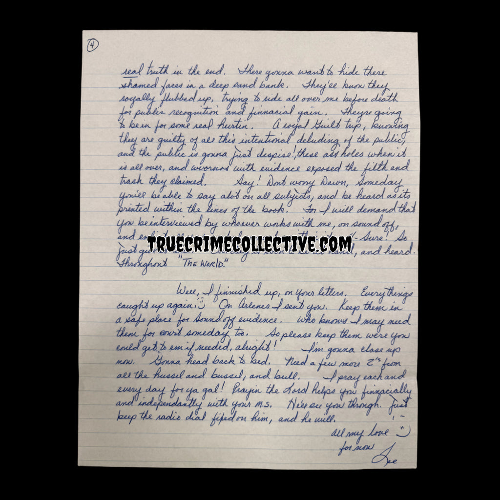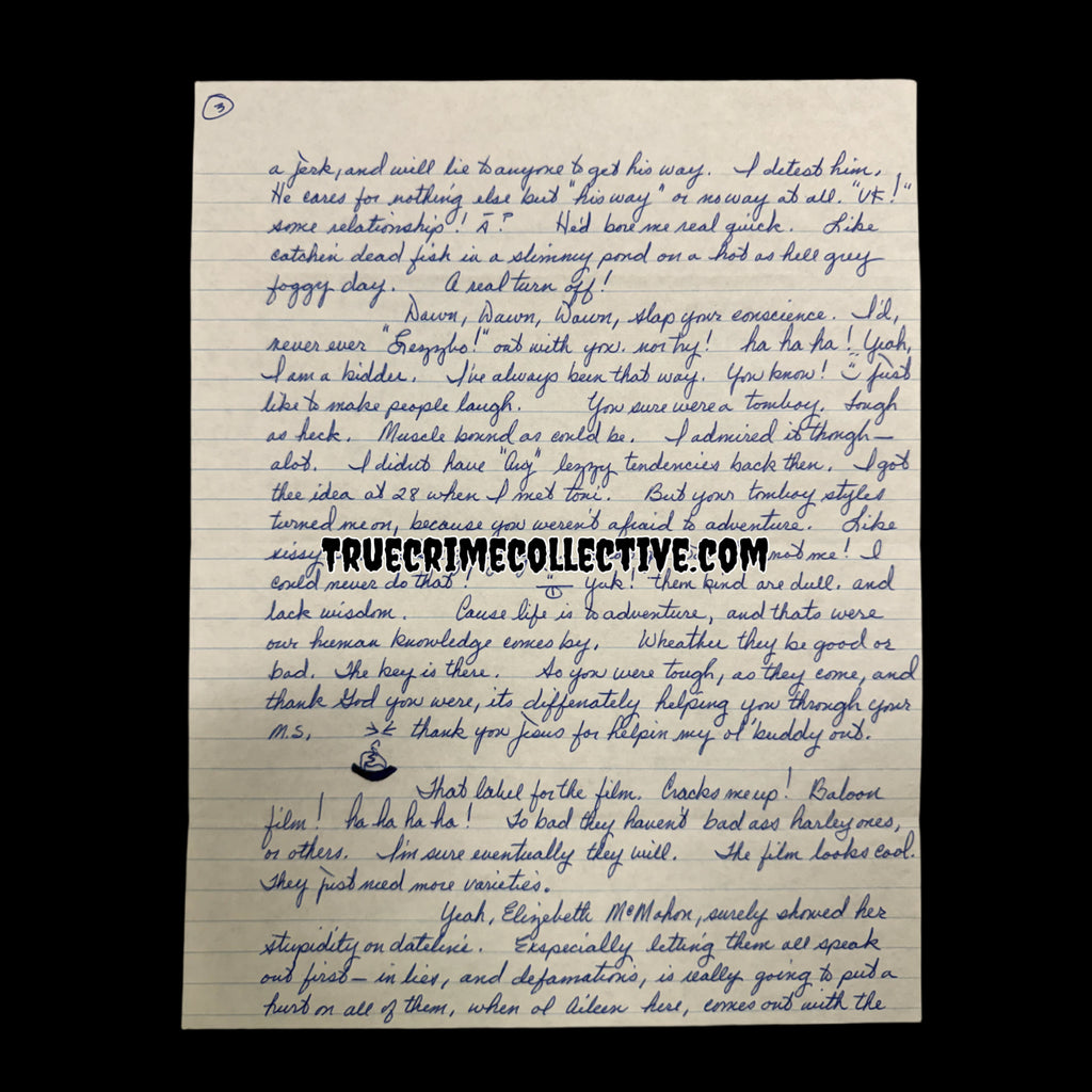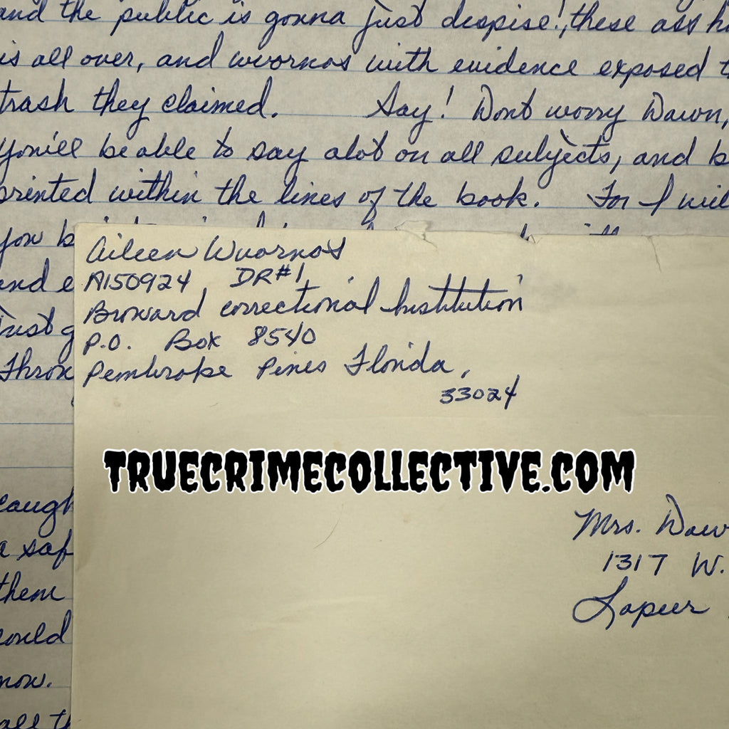 This letter was handwritten by serial killer Aileen Wuornos while on Florida’s death row. The letter was written to Aileen’s best friend Dawn Botkins. Aileen has signed the letter as well as the original envelope that accompanies the letter. This letter includes some very interesting written content from Aileen.