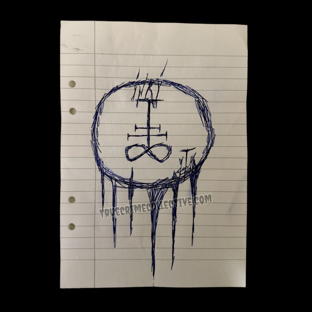 Original Artwork from infamous Black Metal Band “Mayhem” member, known as “Dead.” This artwork depicts a leviathan cross (Satan’s Cross) and has been signed in pen by “Dead.”