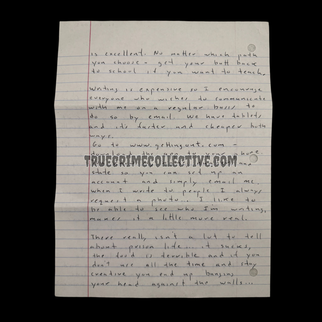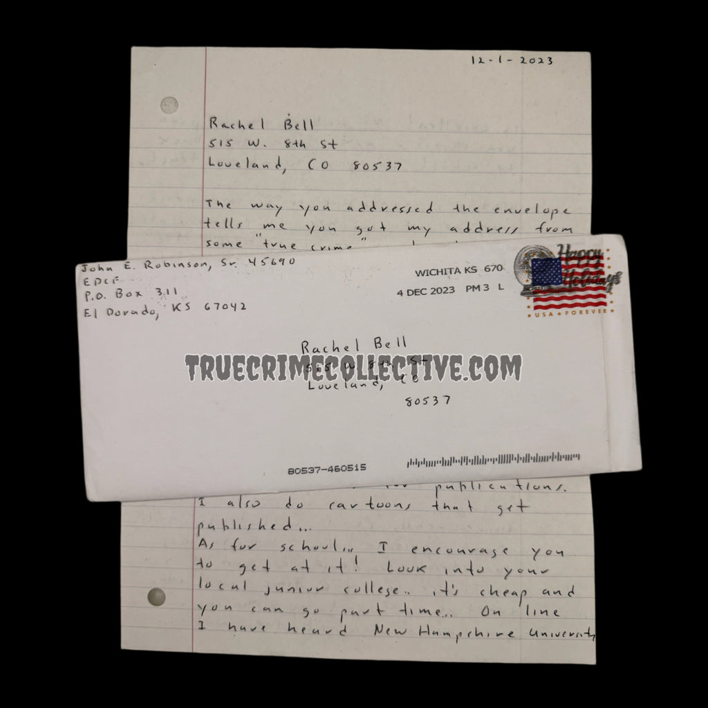This is a letter from the Slave Master serial killer, John Edward Robinson. In 2003, John Robinson was convicted of three murders in Kansas, receiving two death sentences. In 2005, he plead guilty to five additional murders in Missouri. Robinson frequented BDSM chatrooms often, where he would meet most of his victims. It's unclear how many additional murders Robinson may have under his belt.