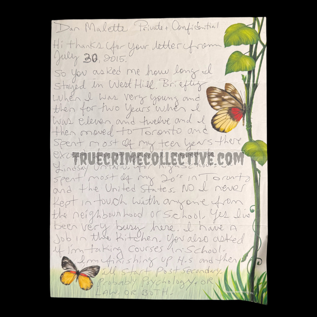 Written in Magnotta’s own hand, the letter provides an authentic artifact connected directly to the psychology and persona of a killer whose crimes were deeply intertwined with media attention and self-mythologizing. The handwriting serves as a stark reminder of the human presence behind a case that shocked the world.