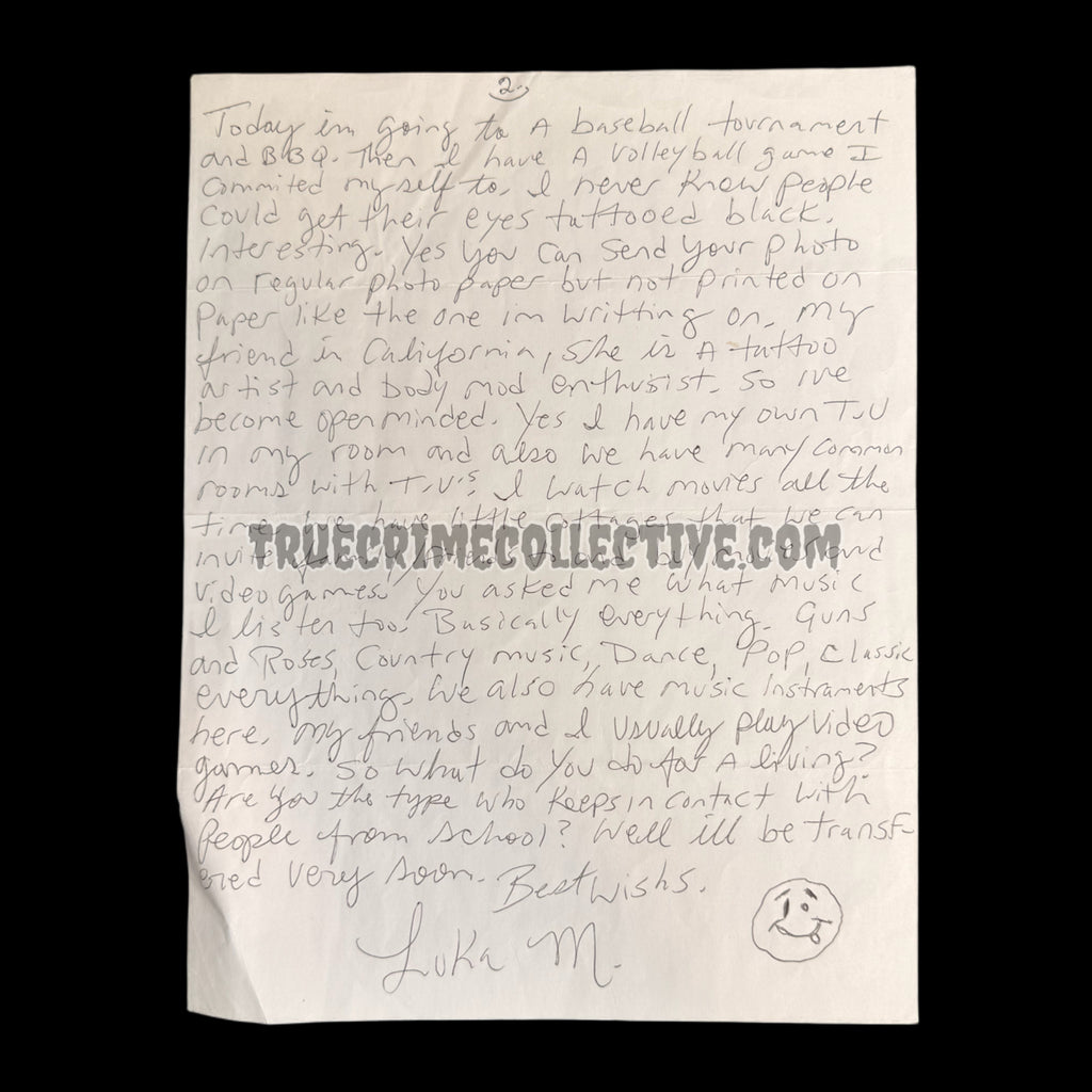 This original handwritten letter by Luka Magnotta offers a rare and unsettling piece of true crime history tied to one of Canada’s most notorious modern murder cases. Magnotta gained international infamy in 2012 for the murder of Jun Lin and the subsequent global manhunt that followed.